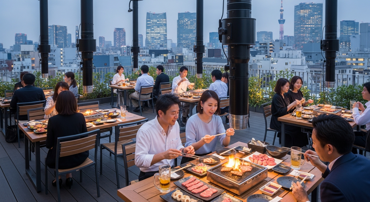 特に最上階のテラス席は、遮るもののないパノラマビューが広がり、夕陽が沈むマジックアワーの美しさは格別だと言われています。大人のグループ利用でも、隣との間隔が十分に確保されているため、プライベートな会話を邪魔されることなく、上質なBBQ体験を期待できるでしょう。